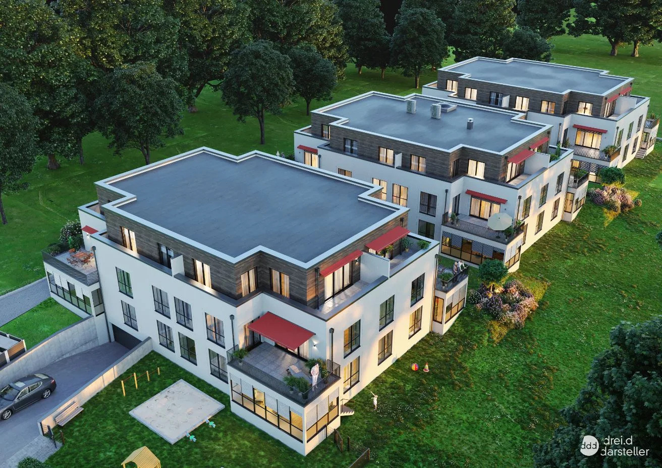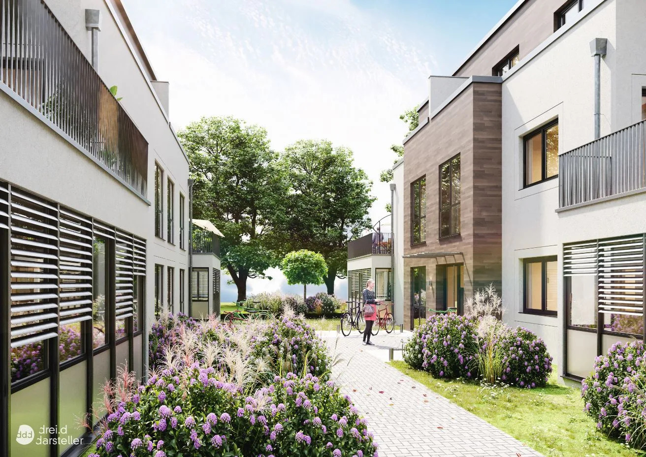 Das Gebäudeensemble beeindruckt außen durch seine moderne Architektur, mit zurückspringenden Staffelgeschossen und einer verputzten und mit Feinsteinzeugfliesen in Holzoptik versehenen Fassade. Innen begeistern zeitgemäße Grundrisse mit offenen Wohnraumkonzepten und hellen, großzügig gestalteten Räumen. Angenehm wird das Leben durch zahlreiche, besonders komfortable Ausstattungsmerkmale wie die Fußbodenheizung mit Einzelraumsteuerung, die elektrischen Rollläden oder Raffstores sowie durch die hochwertige Einrichtung der Badezimmer auf dem neuesten Stand.